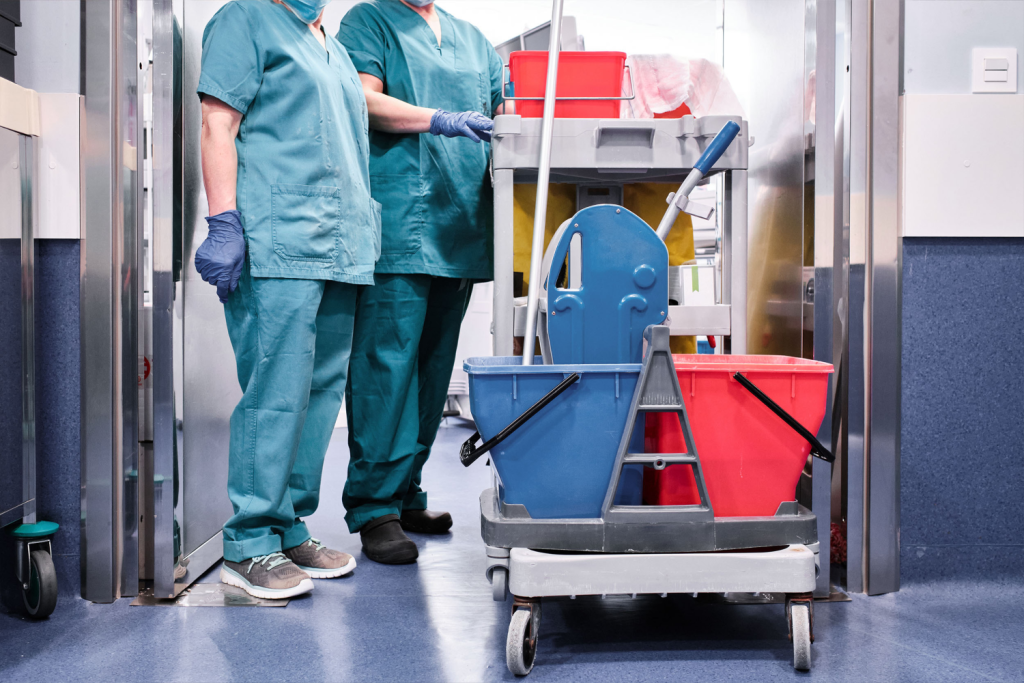 Specialized cleaning for medical facilities, focusing on hygiene, sterilization, sweeping, mopping, and disinfecting high-contact surfaces to ensure a safe environment.